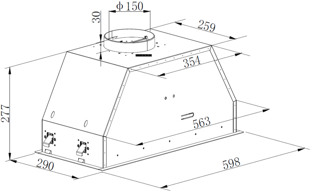 вытяжка встраиваемая в подвесной шкаф, 60 см, 850 м3/ч, черный