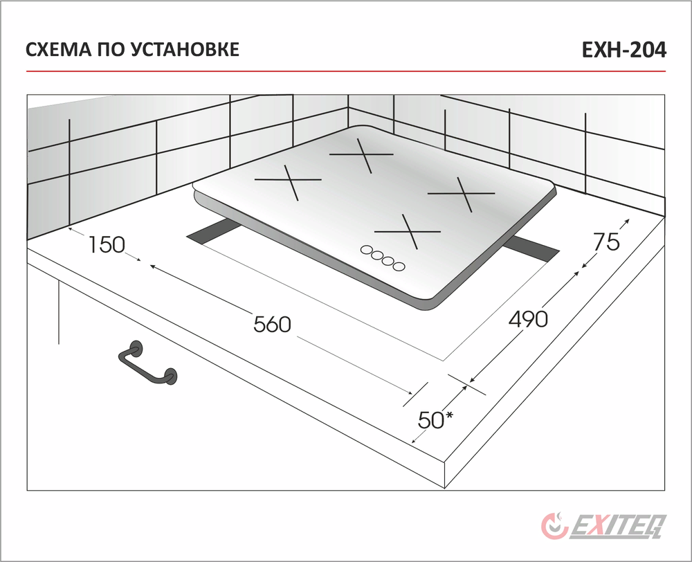 Расположение панели управления варочной поверхностью относительно конфорок. Если панель расположена сбоку, она будет справа.