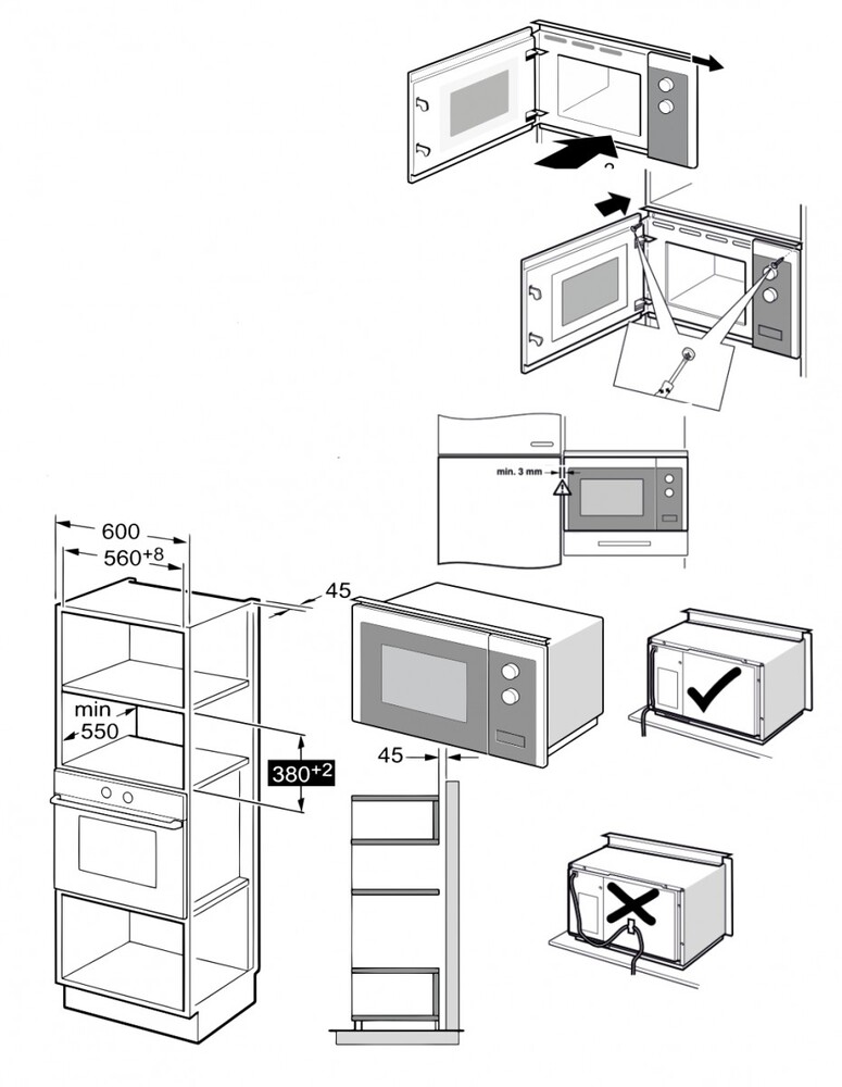 микроволновая печь встраиваемая, 25 л, 59,4x34,4х38,2 см, черный