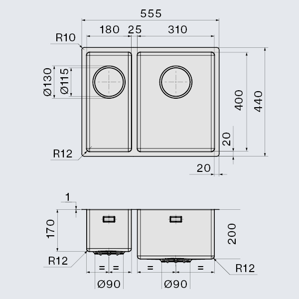 Falmec COMO 18+31 Steel, мойка, нержавеющая сталь