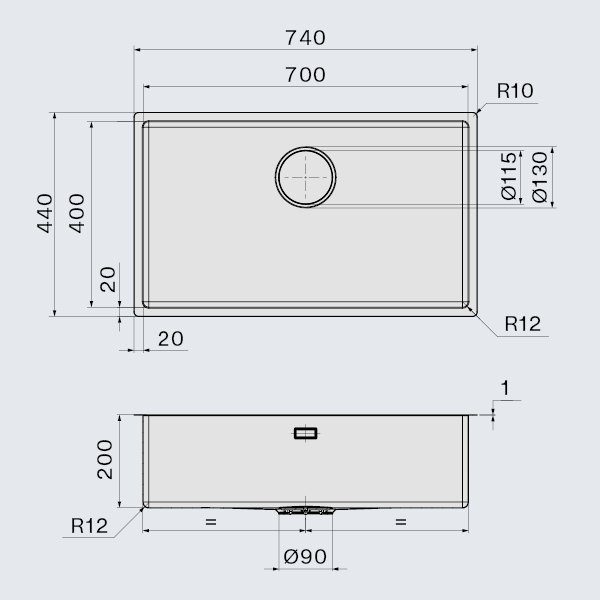 Falmec COMO 70 Steel, мойка, нержавеющая сталь Мойка из нержавеющей стали
