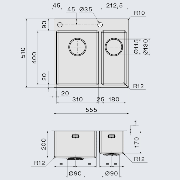 Falmec GARDA 31+18 Steel, мойка, нержавеющая сталь Мойка из нержавеющей стали