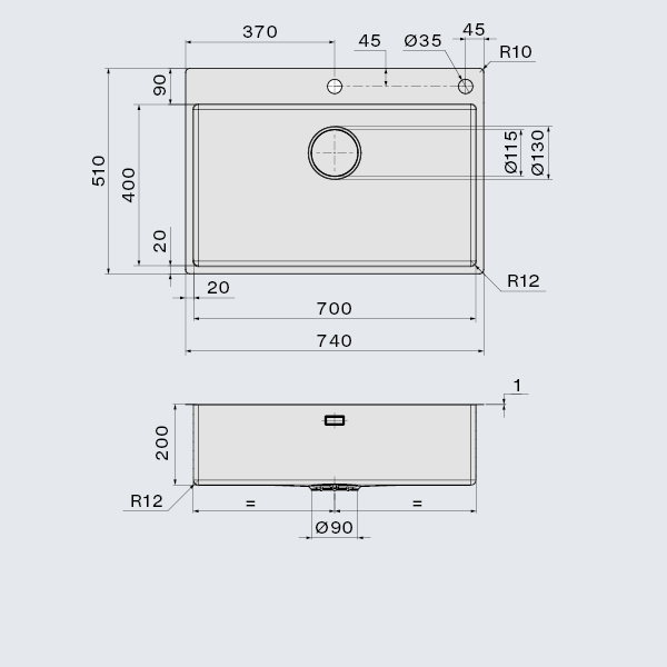Falmec GARDA 70 Steel, мойка, нержавеющая сталь Мойка из нержавеющей стали