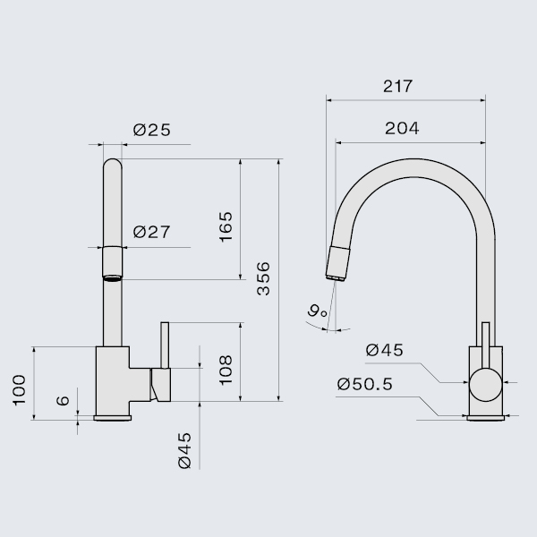 смеситель для кухни, нержавеющая сталь, высокий поворотный выдвижной излив, нержавеющая сталь