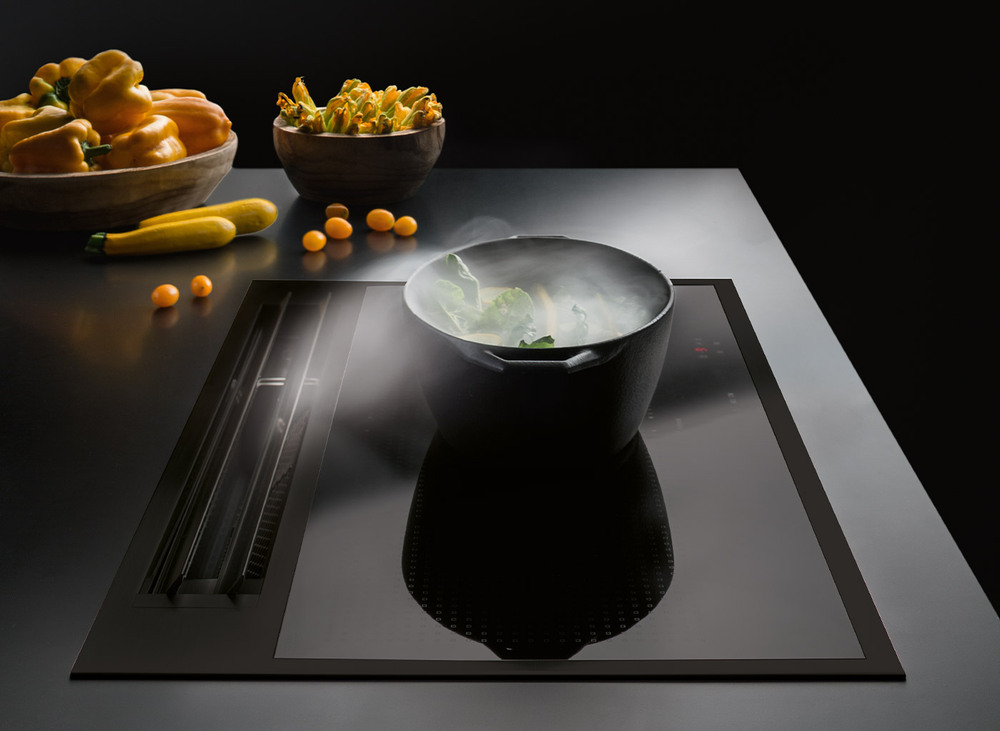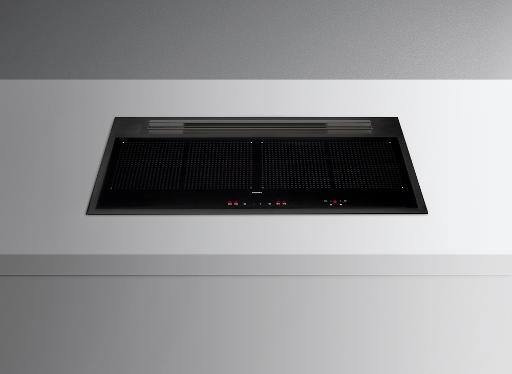 поверхность варочная стеклокерамическая индукционная с встроенной вытяжкой, 88 см, черная эмаль