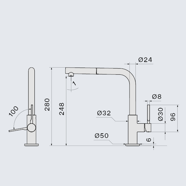 смеситель для кухни, латунь, высокий поворотный выдвижной излив, хром
