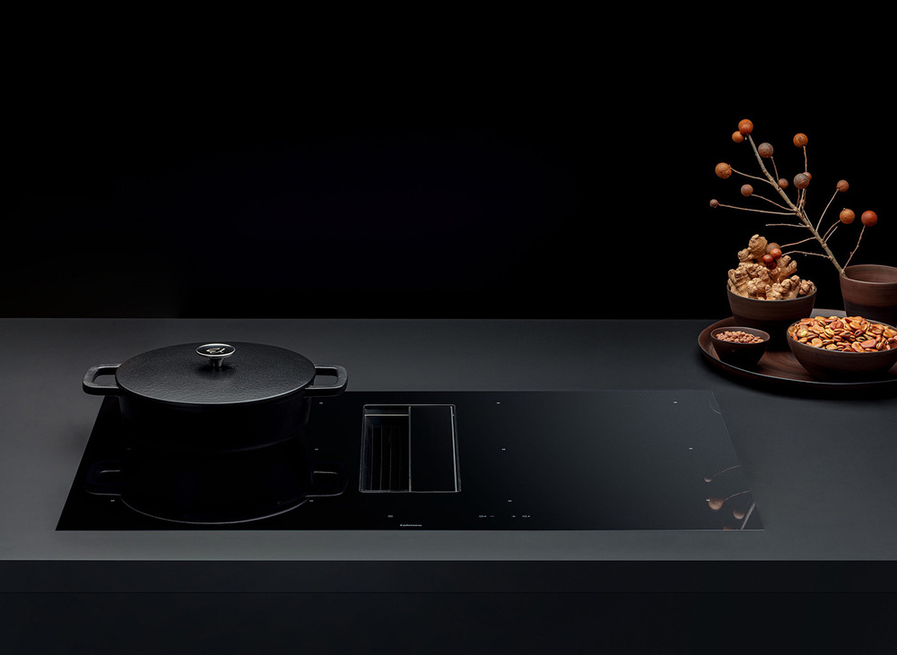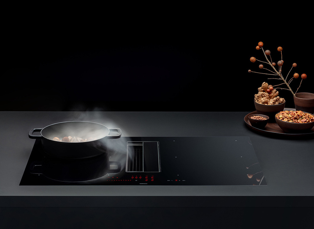 Модели со встроенной вытяжкой подходят для компактных кухонь. Запахи, пар и дым от готовки полностью поглощаются встроенной вытяжкой.