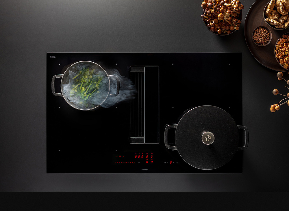 Модели со встроенной вытяжкой подходят для компактных кухонь. Запахи, пар и дым от готовки полностью поглощаются встроенной вытяжкой.
