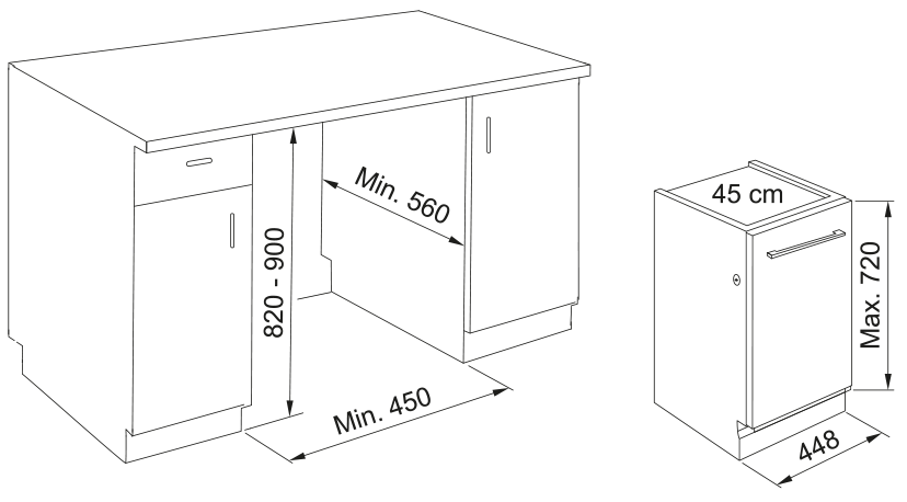 машина посудомоечная встраиваемая, 45 см, 10 комплектов