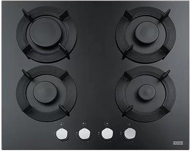 поверхность газовая, 60 см, газ на стекле, 4 конфорки, чугунные решетки, черный