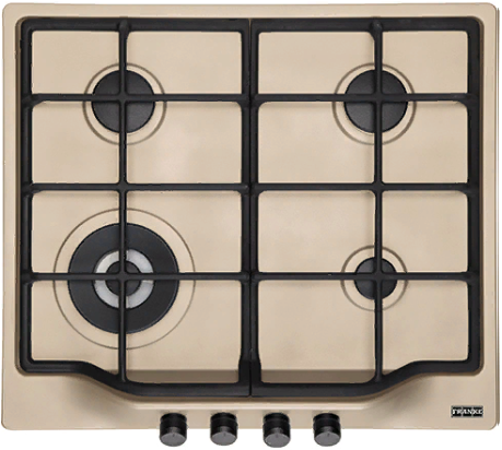 поверхность газовая, 60 см, газ на эмали, 4 конфорки, чугунные решетки, бежевый