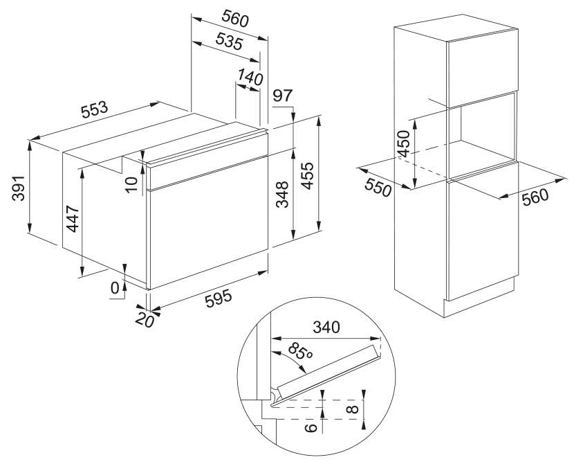 Ширина корпуса электроприбора. Особенно важно точно знать точную допустимую ширину для встраиваемой техники.