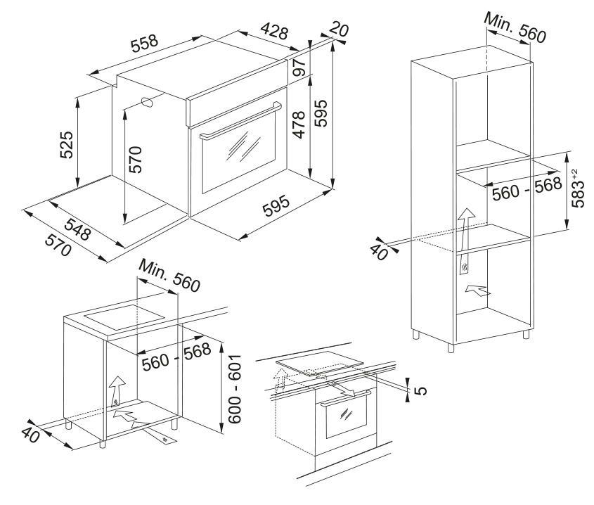 Ширина корпуса электроприбора. Особенно важно точно знать точную допустимую ширину для встраиваемой техники.