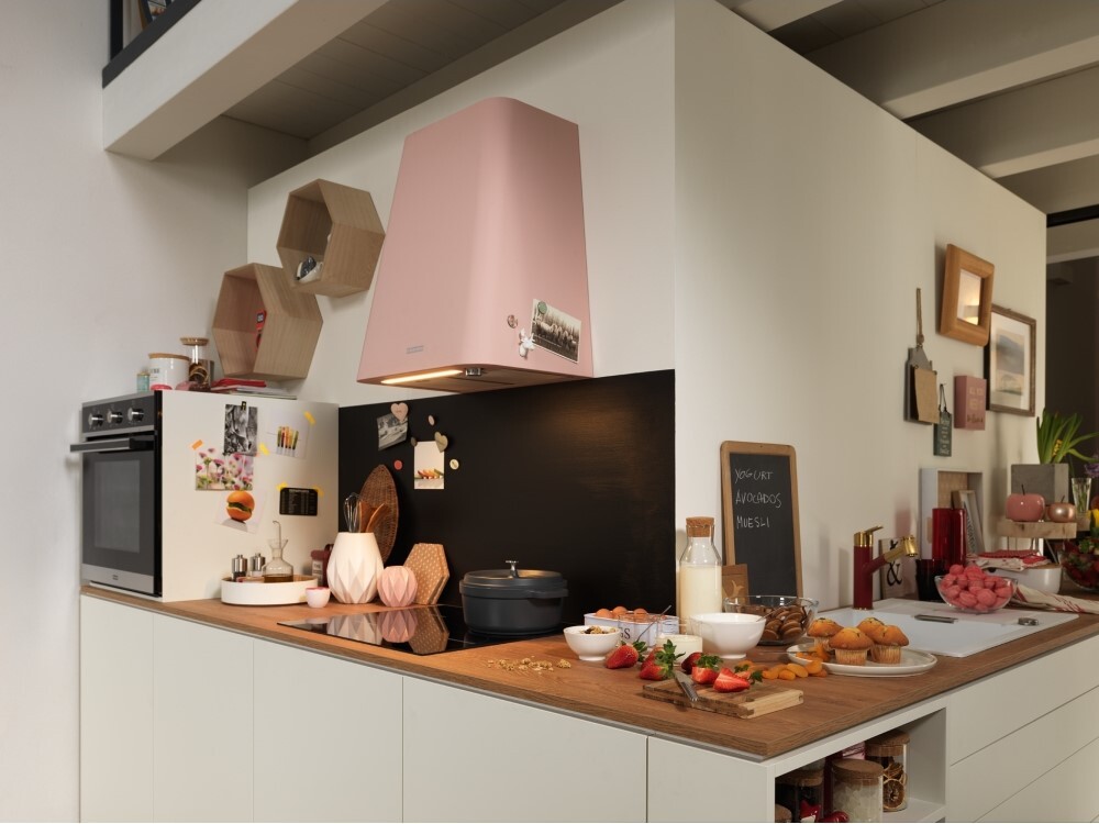 вытяжка пристенная, 50 см, 850 м3/ч, матовый розовый