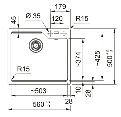 Расстояние от дна до верхней кромки чаши мойки. Оптимальная глубина — 15-18 см. Чем глубже мойка, тем меньше брызг попадет наружу.