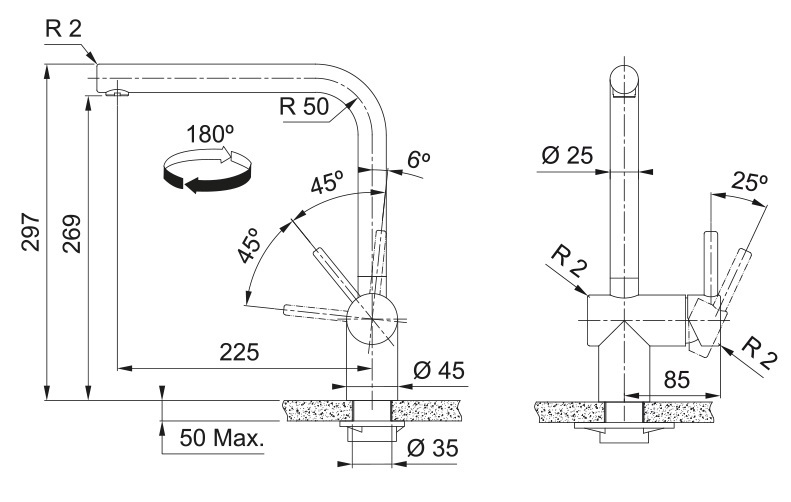 смеситель для кухни, нержавеющая сталь, высокий поворотный излив, антрацит