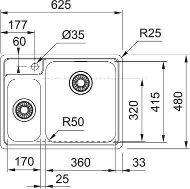 мойка, нержавеющая сталь, 625х480 мм, нержавеющая сталь