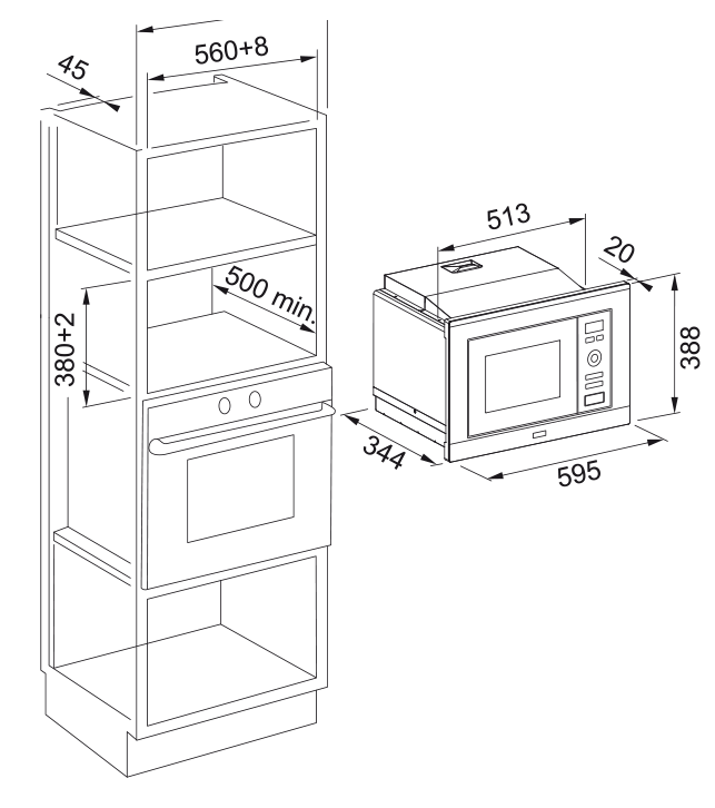микроволновая печь встраиваемая, 20 л, 59,5x34,4х38,8 cм, черный матовый