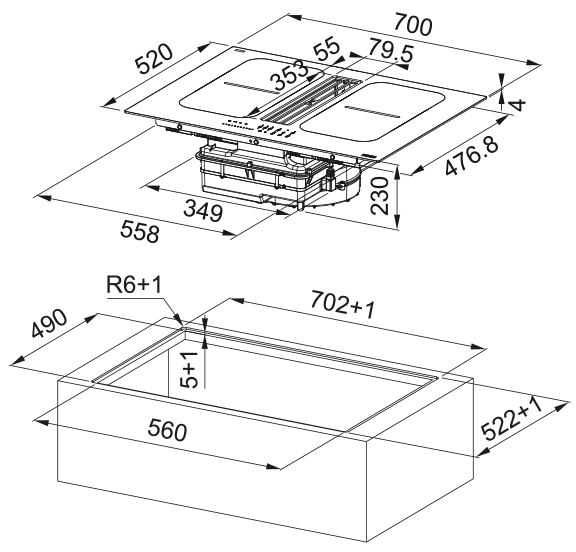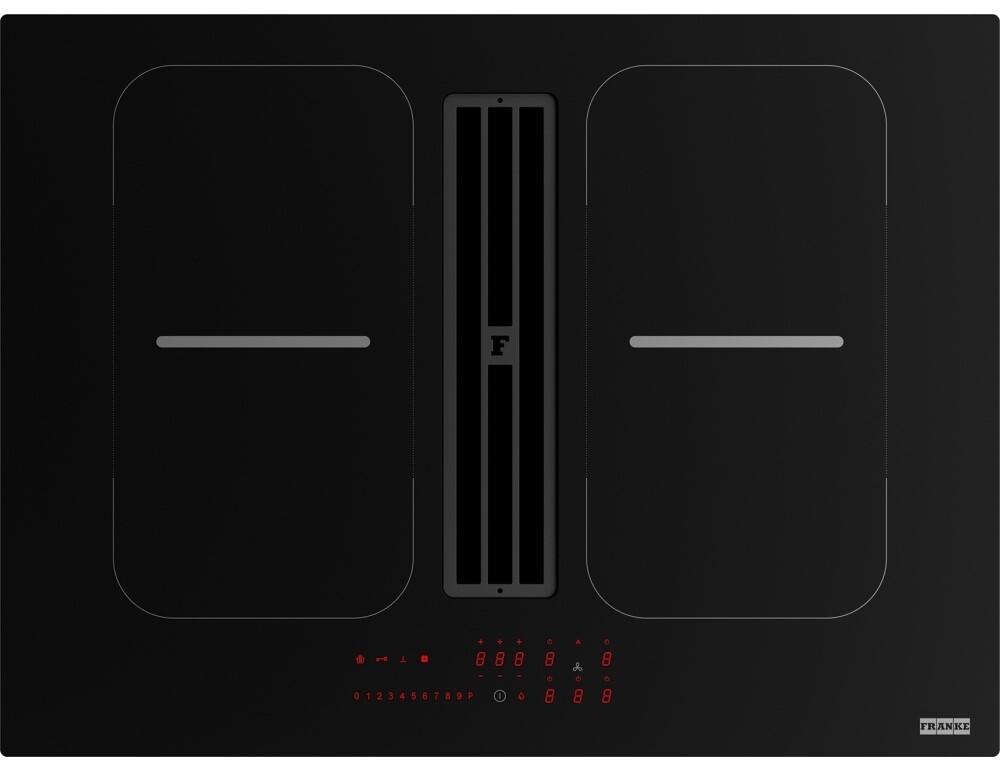 поверхность варочная стеклокерамическая индукционная с встроенной вытяжкой, 70 см, черный