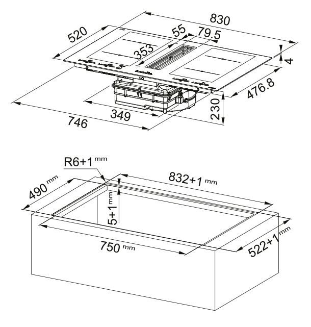 поверхность варочная стеклокерамическая индукционная с встроенной вытяжкой, 83 см, черный