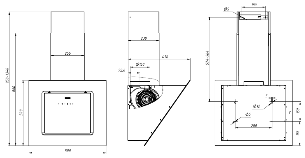вытяжка наклонная, 60 см, 1000 м3/ч, черный