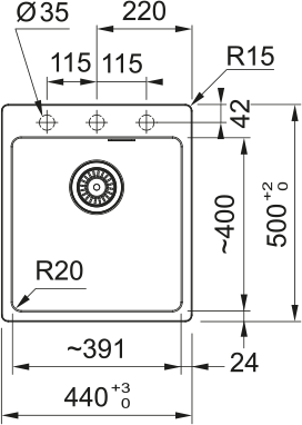 Расстояние от дна до верхней кромки чаши мойки. Оптимальная глубина — 15-18 см. Чем глубже мойка, тем меньше брызг попадет наружу.