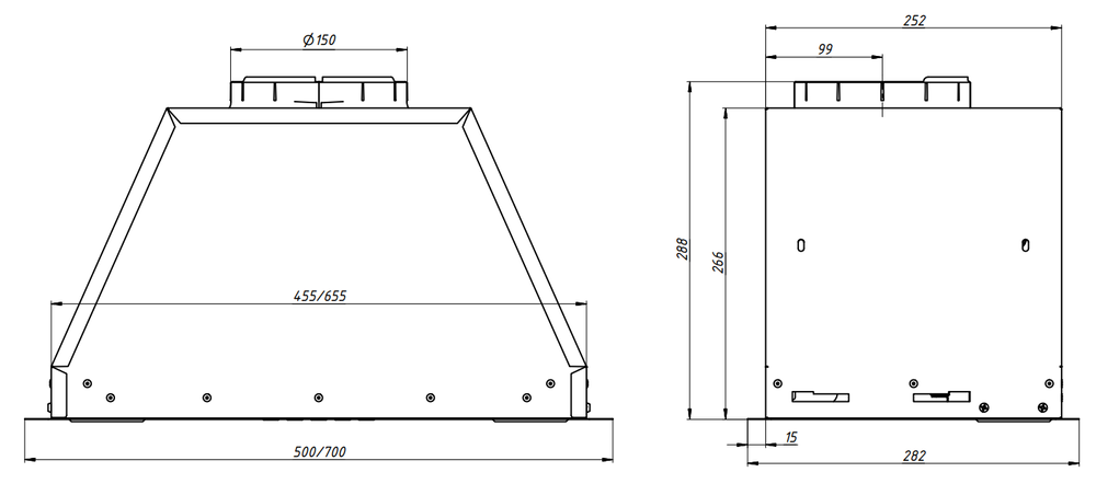 В зависимости от расположения существует несколько типов установки кухонных вытяжек: встраиваемые, стандартные, пристенные, островные и др.