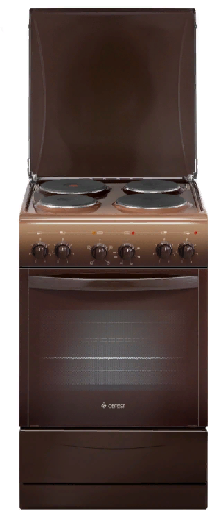 плита электрическая отдельностоящая с чугунными конфорками, 50х58.5х85 см, 4 конфорки, коричневый