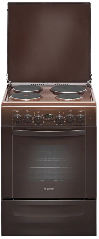 плита электрическая отдельностоящая с чугунными конфорками, 60х60х85 см, 4 конфорки, коричневый