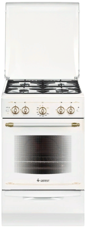 плита газовая отдельностоящая, 50х58,5х85 см, 4 конфорки, белый с рисунком "ретро"