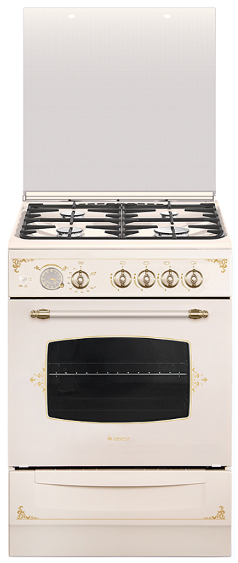 плита газовая отдельностоящая, 60х60х85 см, 4 конфорки, кремовый с рисунком "ретро"