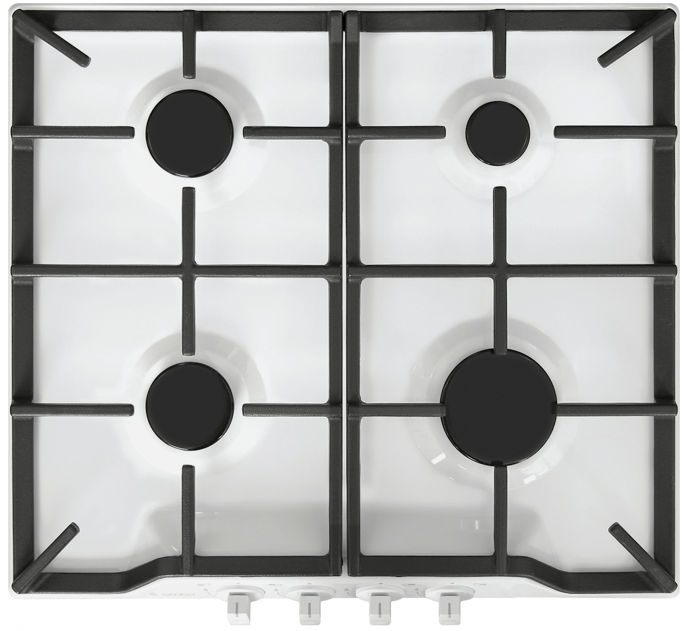 поверхность газовая, 60 см, газ на эмали, 4 конфорки, решетки чугунные, белый