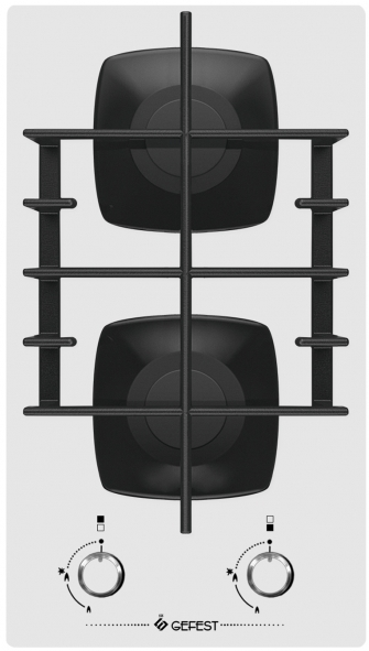 поверхность газовая, 30 см, газ на стекле, 2 конфорки, решетки чугунные, белый