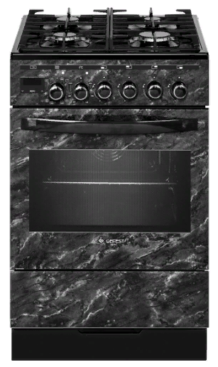плита комбинированная отдельностоящая, 50х58,5х85 см, 4 конфорки, черный с рисунком "мрамор"