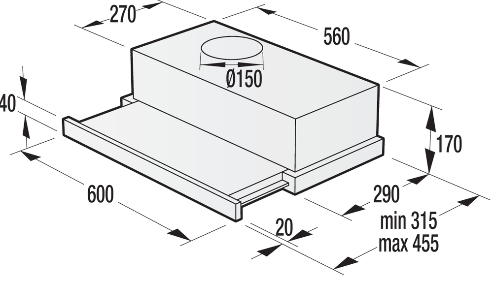вытяжка встраиваемая телескопическая, 60 см, 435 м3/ч, слоновая кость