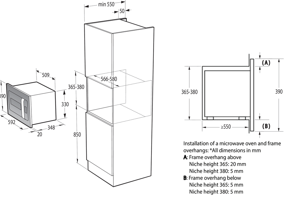 микроволновая печь встраиваемая, 23 л, 59,2х37,6х39 см, черный