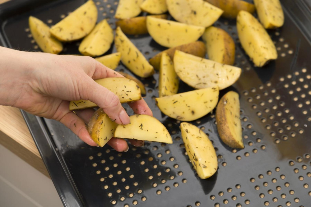 Выдвижные металлические полозья, которые легко выезжают за пределы камеры духовки вместе с противнем, не давая ему упасть.