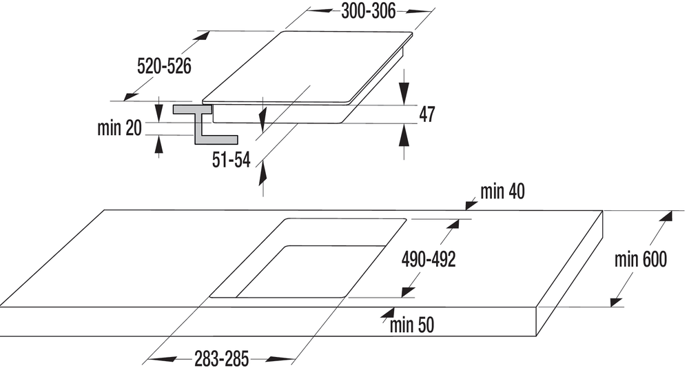 Характер огранки фаски на внешней стороне варочной панели. Металлические рамки предотвращают забивание монтажных швов крошками и пылью.