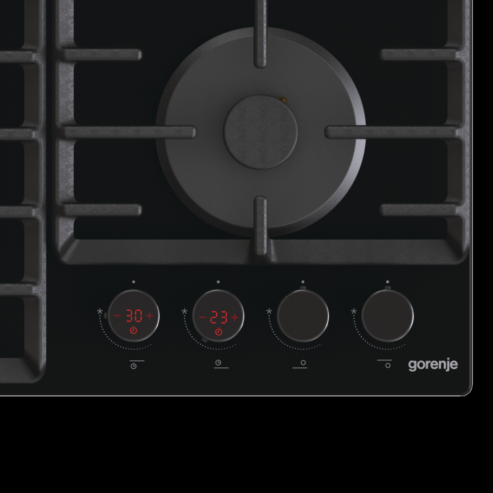 поверхность газовая, 60 см, газ на стекле. 4 конфорки, решетки чугунные, черный