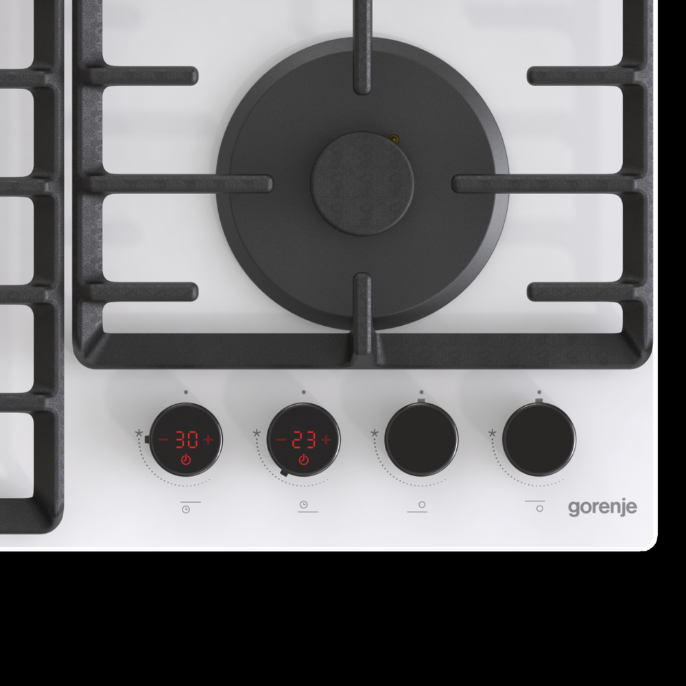 поверхность газовая, 60 см, газ на стекле. 4 конфорки, решетки чугунные, белый