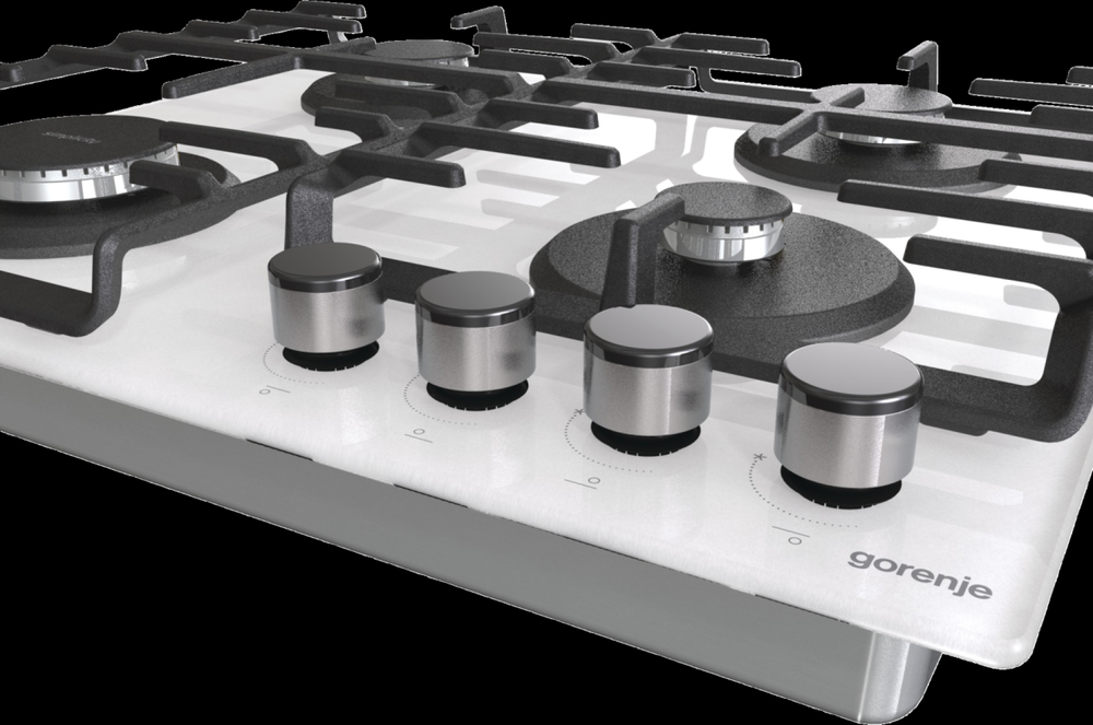поверхность газовая, 60 см, газ на стекле, 4 конфорки, чугунные решетки, белый
