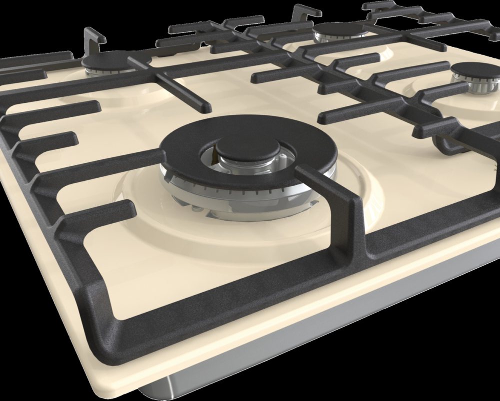 поверхность газовая, 60 см, газ на эмали, 4 конфорки, решетки чугунные, слоновая кость
