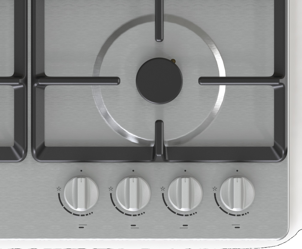 поверхность газовая, 60 см, газ на металле, 4 конфорки, нержавеющая сталь