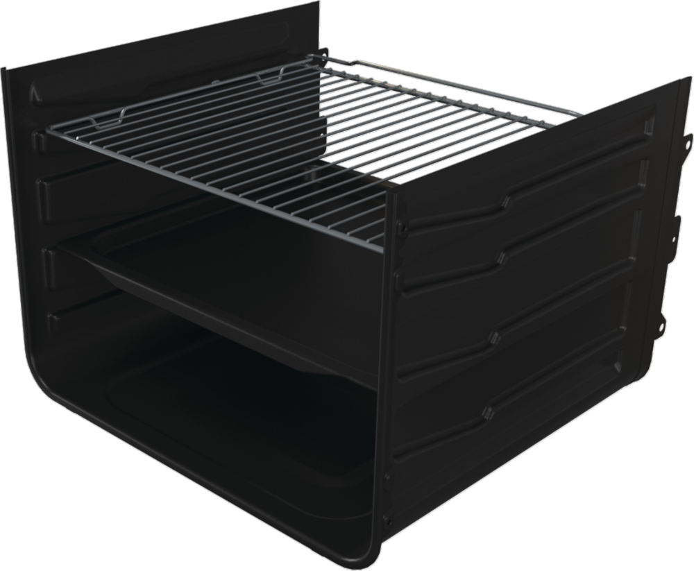 Выдвижные металлические полозья, которые легко выезжают за пределы камеры духовки вместе с противнем, не давая ему упасть.