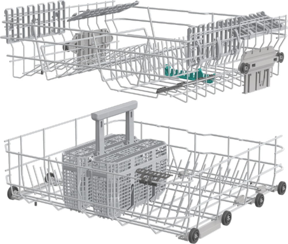 В стандартной посудомоечной машине 3 корзины — 2 для посуды и 1 для столовых приборов. Современные модели могут иметь от 1 до 4 корзин.