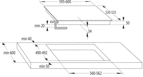 Характер огранки фаски на внешней стороне варочной панели. Металлические рамки предотвращают забивание монтажных швов крошками и пылью.
