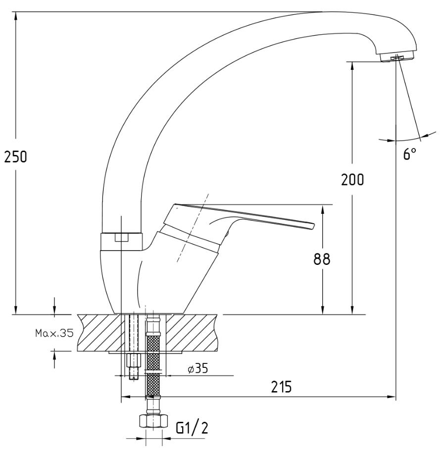 смеситель для кухни, латунь, высокий поворотный излив, топаз