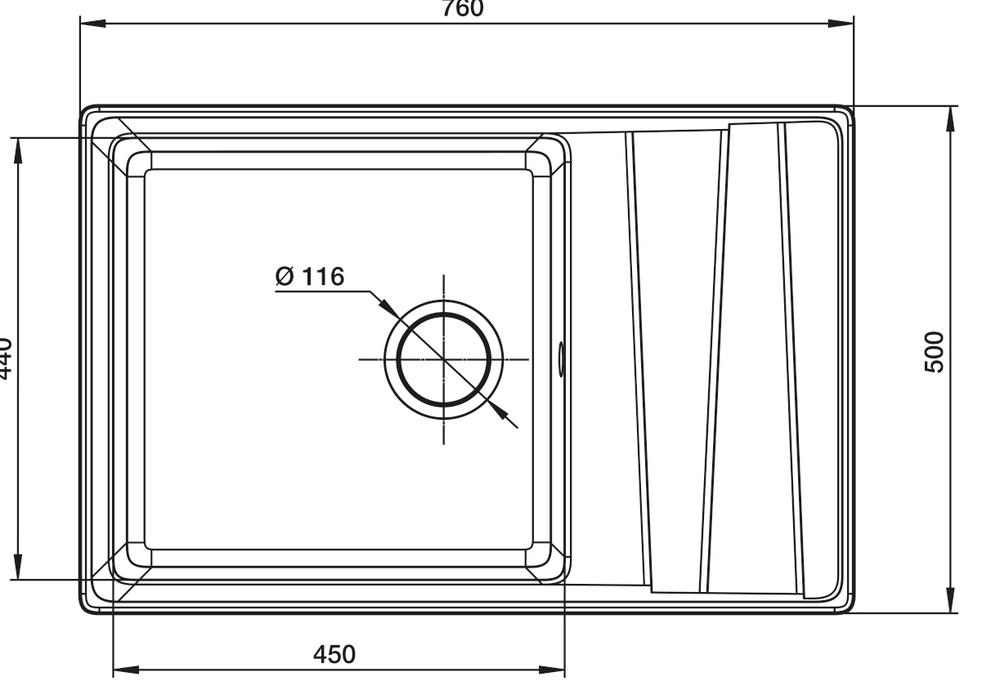 Расстояние от дна до верхней кромки чаши мойки. Оптимальная глубина — 15-18 см. Чем глубже мойка, тем меньше брызг попадет наружу.