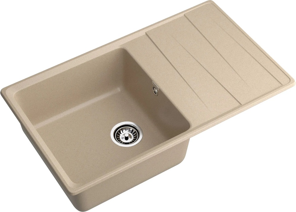 мойка, мрамор, 860х500 мм, песочный, с сифоном