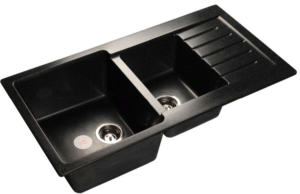 мойка, мрамор, 977х503 мм, черный, с сифоном